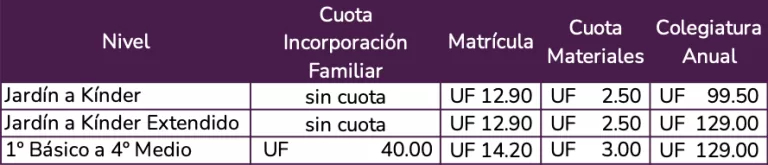 El horario desde 1º básico hasta 4º medio es de 8:10 a 15:50 de lunes a jueves y viernes de 8:10 a 12:50.